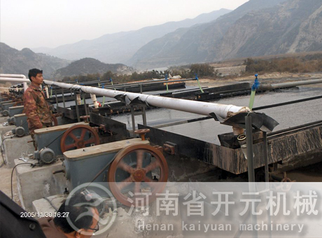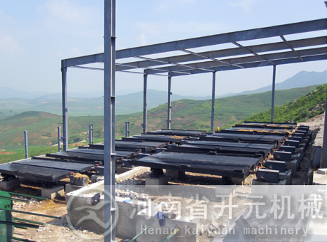 6S搖床選礦過程是在具有來復條的傾斜臺面上進行的,礦粒群從臺面上角的給礦槽送入,同時由給水槽供給橫向沖洗水,在振動波作用下,按比重和粒度分層,并沿臺面作縱向運動和橫向運動.比重和粒度不同的礦粒沿著各自的運動方向呈梯形流下,分別從精礦端和尾礦側的不同位置排出,*后被分成精礦、中礦和尾礦。
