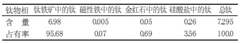 原礦的主要化學成分分析結果見表1,鈦物相分析結果見表2。